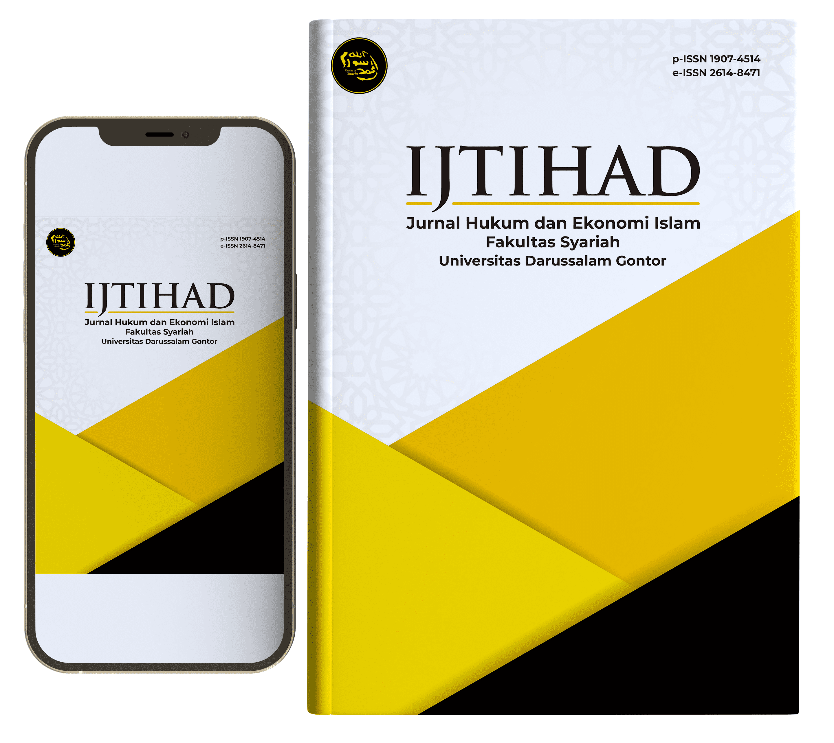 Ijtihad is a scientific journal of Law and Islamic Economics published by University of Darussalam Gontor. It is a semiannual journal published in JUNE and DECEMBER for the developing the scientific ethos. Editors accept scientific articles and result of research in accordance the nature of law and Islamic economics journals.